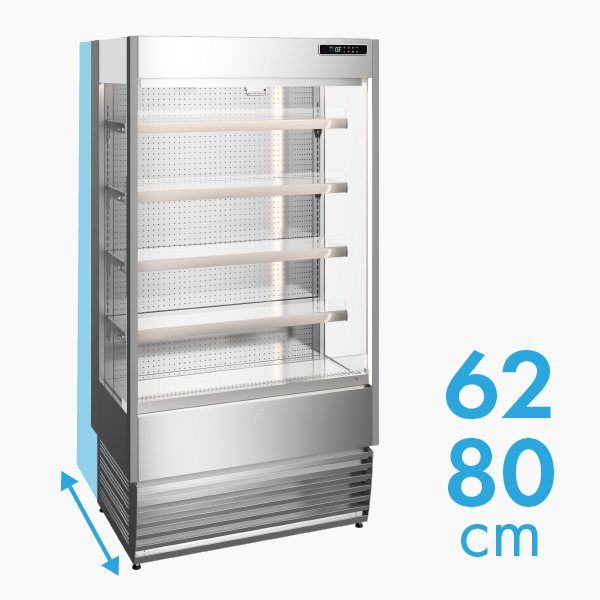 Disponível em duas larguras, 62 e 80 cm, para se adaptar a diferentes espaços de loja.