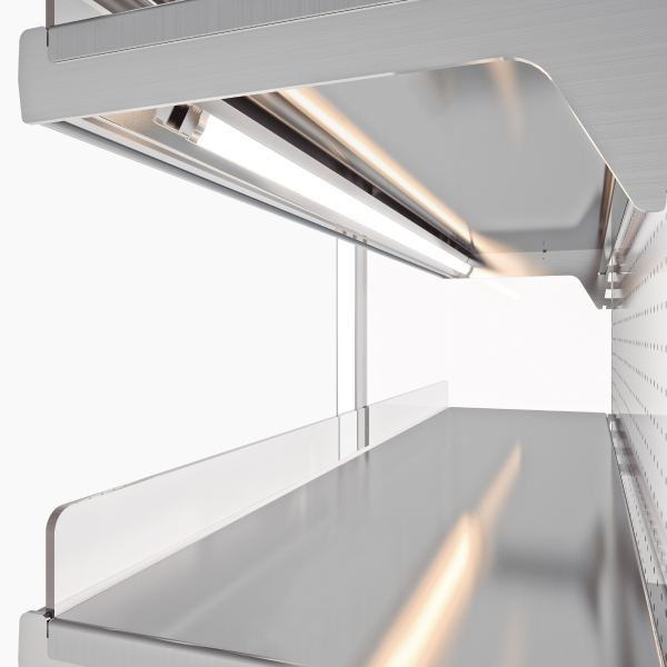 Iluminação LED, lateral e superior, de alto brilho e elevada eficiência energética para máxima visibilidade dos seus produtos.