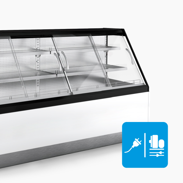 Modelos refrigerados com opção de portas frontais de correr, permitindo ganhos de até 50% de poupança de energia sem comprometer a visibilidade e o destaque que os produtos merecem.