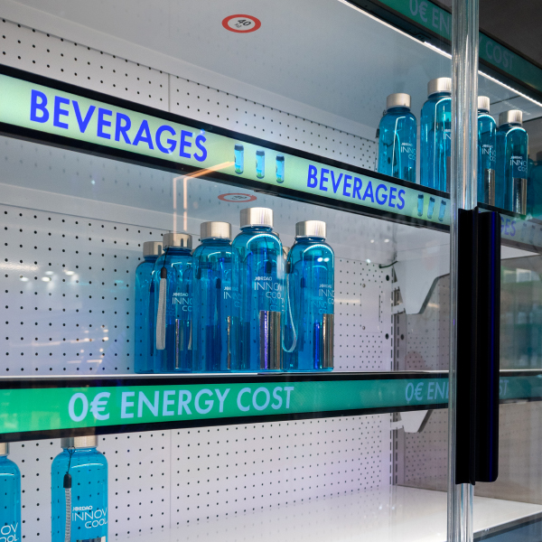 O novo sistema de gestão de iluminação LED inteligente deteta a proximidade dos clientes e ajusta de forma automática a luminosidade do expositor. O sistema reduz a intensidade da iluminação, quando ninguém se encontra por perto, reduzindo assim o desperdício de energia quando esta não é necessária.
