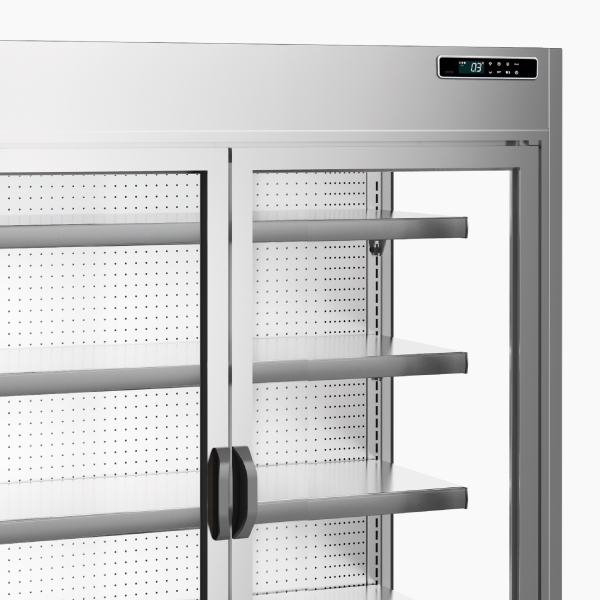 Os murais refrigerados UNITED estão também disponíveis com portas de serviço que facilitam as operações em loja, para que nunca falte produto aos seus Clientes.